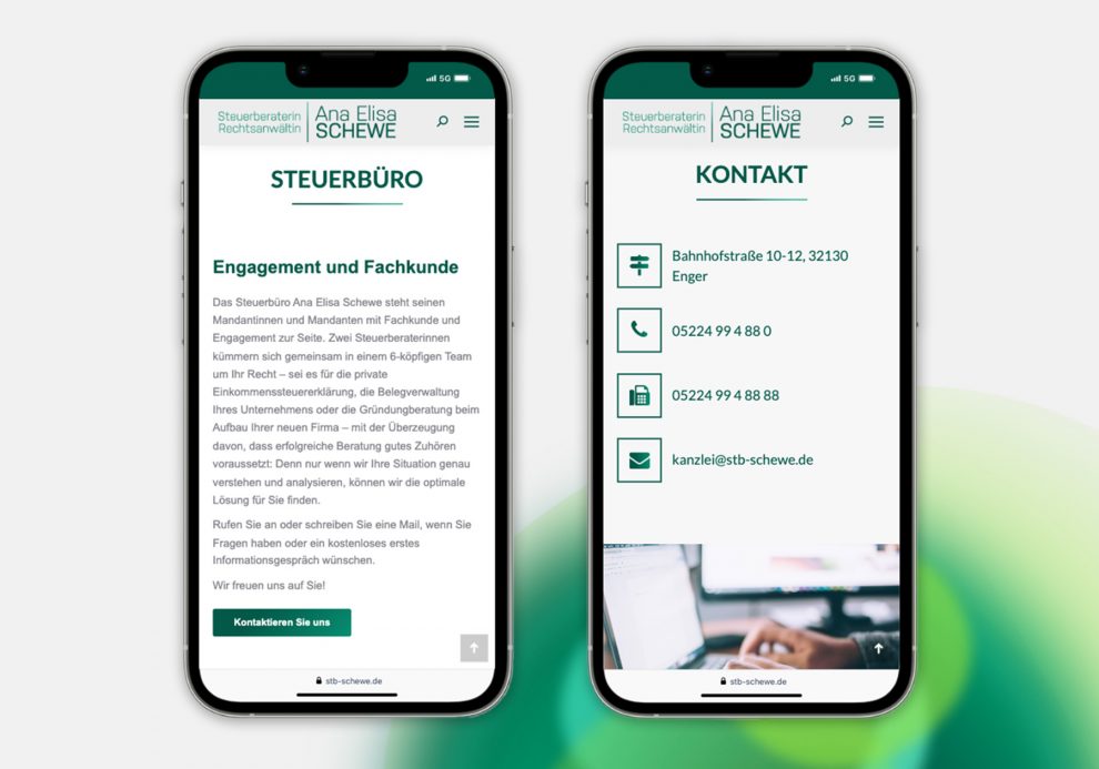 Corporate design pour un cabinet d’expertise comptable en Rhénanie-du-Nord-Westphalie (Allemagne). Création d’un nouveau logo et développement de cartes de visite, en-têtes de lettres, enveloppes, enseignes, dossiers, tampons, etc. Un site Web responsive One-Page a été développé et réalisé à cette effet.