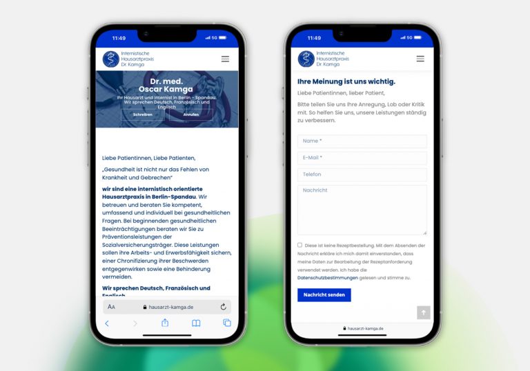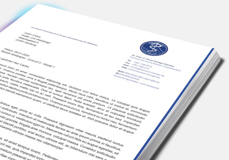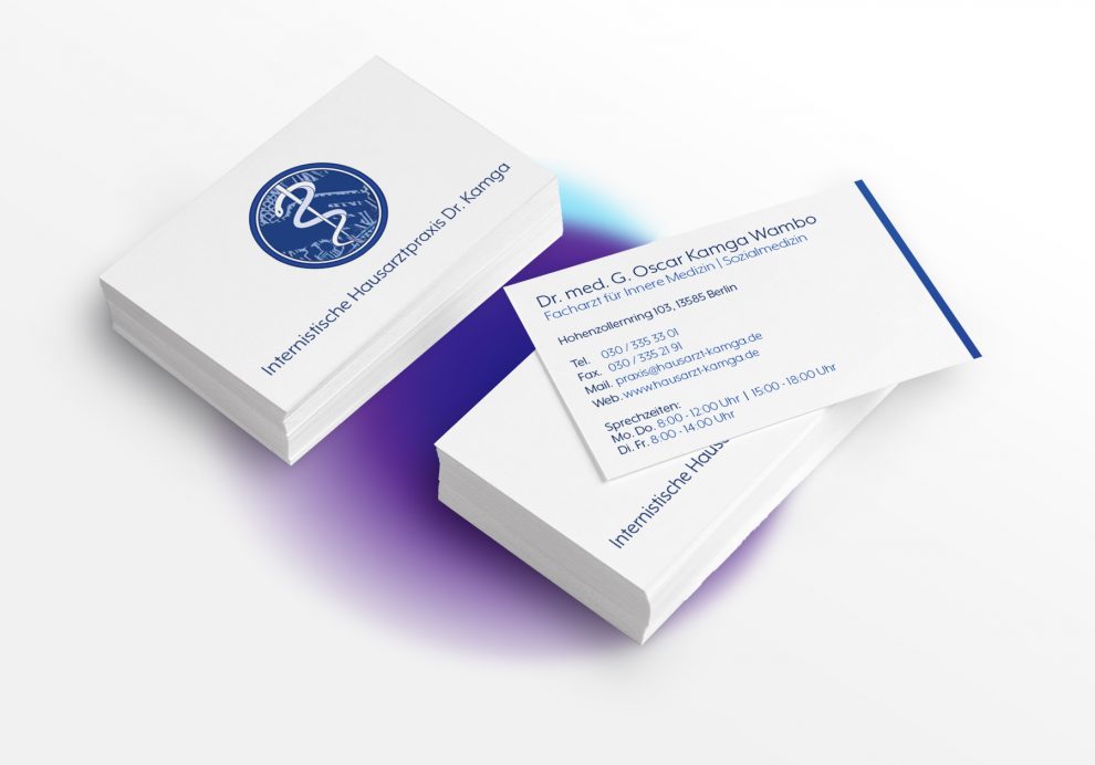 Corporate Design für eine Hausarztpraxis in Berlin. Gestaltung eines neues Logos und Entwicklung von Visitenkarte, Briefbogen, Briefumschlägen und Praxisschild. Eine Webseite wurde dazu entwickelt und realisiert.